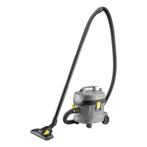 Versatile and easy to transport thanks to the low weight of 3.8 kg, our dry vacuum cleaner T 11/1 Classic is the perfect choice for professional users who frequently change the operation site. With a generous container volume of 11 litres, the compact machine in the entry-level class generates a vacuum of 235 mbar/23.5 kpa from 850 W power, thus guaranteeing excellent vacuuming results in a short time. The vacuum cleaner works so quietly at only 61 dB(A), meaning that not only the user is protected, but also work can be done at any time of the day in noise-sensitive areas such as hospitals or hotels. An ergonomic bend guarantees long and fatigue-free applications, even vacuuming on stairs is effortless thanks to the integrated carrying handle. The robust design of the T 11/1 Classic ensures not only a long life, its all-round bumper reliably prevents the machine tilting. Accessories such as suction tube and floor nozzle can be comfortably stored at the vacuum cleaner, a fleece filter bag is also supplied. On request, a high-performance HEPA 14 filter is also available.